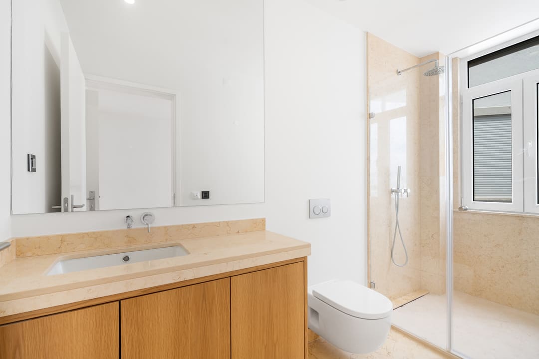 Na área privada, usufrua de uma master suite com zona de closet e três suites, todas com roupeiros de excelente dimensões, garantindo organização e arrumação, e casas de banho com base de duche e janela, maximizando a ventilação e a iluminação natural.